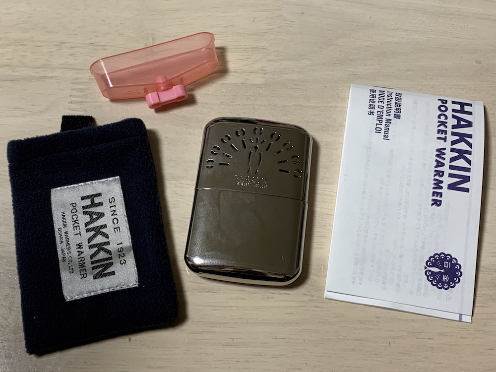ハクキンカイロ本体、説明書、使用中に入れるケースと、