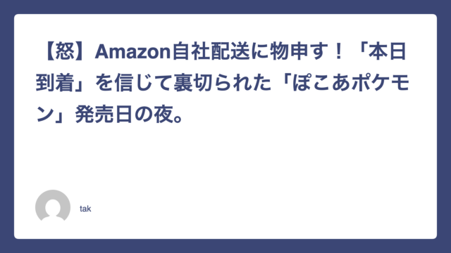 【怒】Amazon自社配送に物申す!「本日到着」を信じて裏切られた「ぽこあポケモン」発売日の夜。