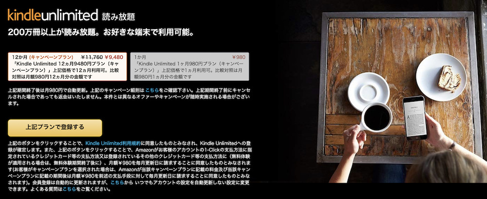 こういう感じでヘビーに利用している向けのプランもkindle unlimitedにはあるようで、年額プランで加入すると¥9,480で加入できるので、月額で加入するよりちょっぴりおトクになるようです。