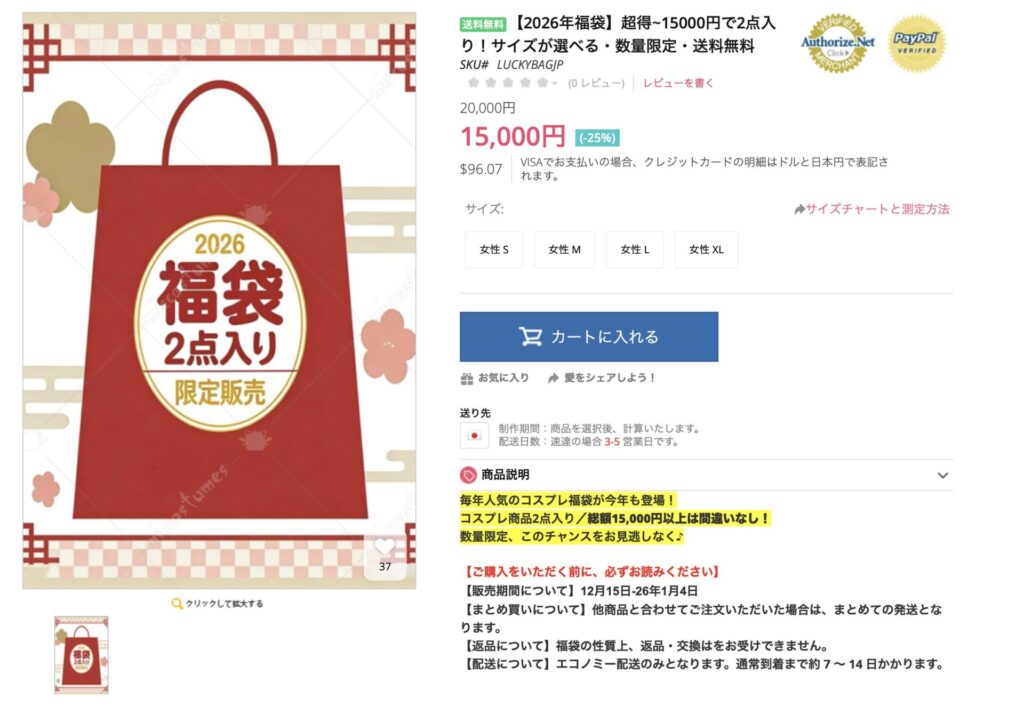 新作入荷していないかな〜ってサイトを覗きに行くと、福袋の販売があるじゃありませんか!
